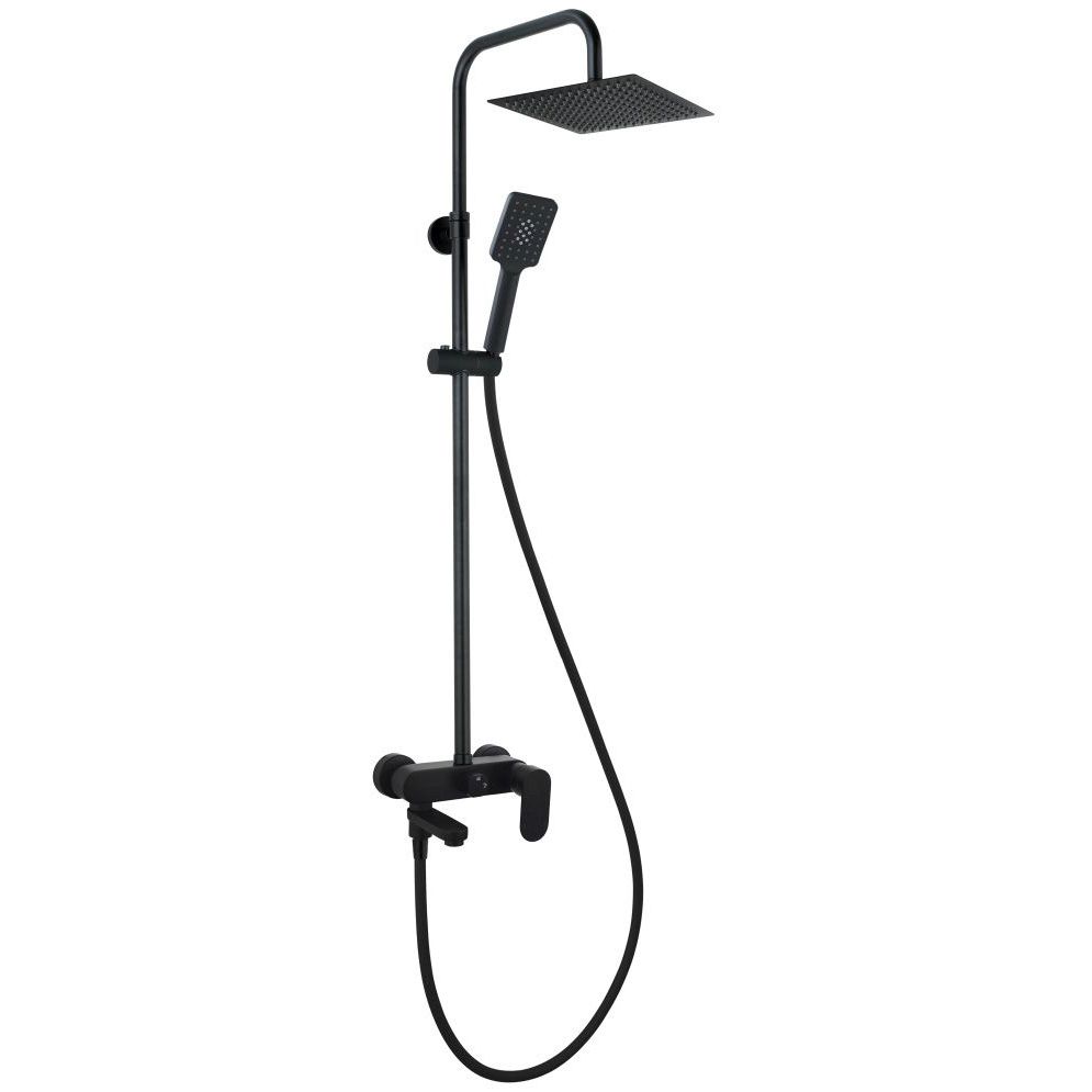 Душевая колонна AQG (АКУГ) Nite, регулируемая по высоте 95-150 см: со складным изливом и квадратным верхним душем 25х25 см, цвет черный матовый 21NITC25SUB05