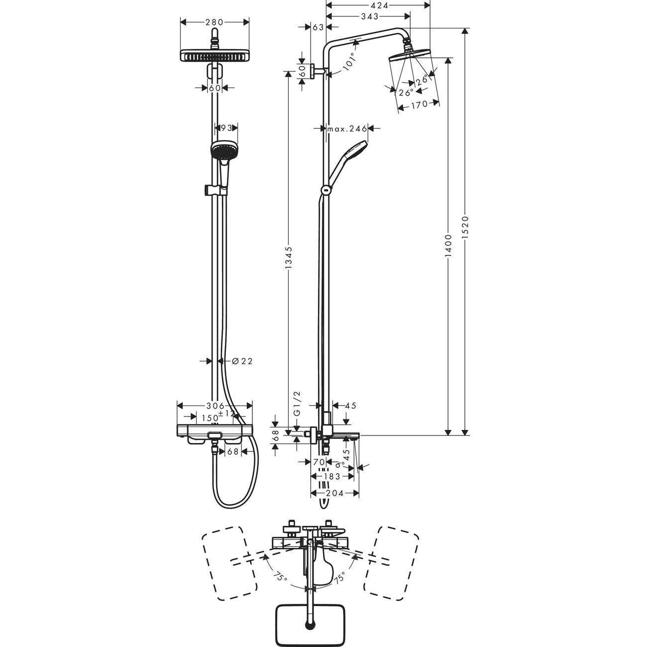 Душевая система для ванн, для душа Hansgrohe (Хансгрое) Croma E хром (27687000)