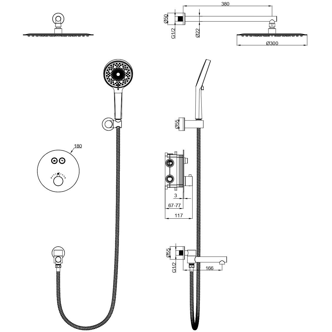 Душевая система с термостатом встраиваемая Wonzon & Woghand, Хром (WW-88929010-CR)