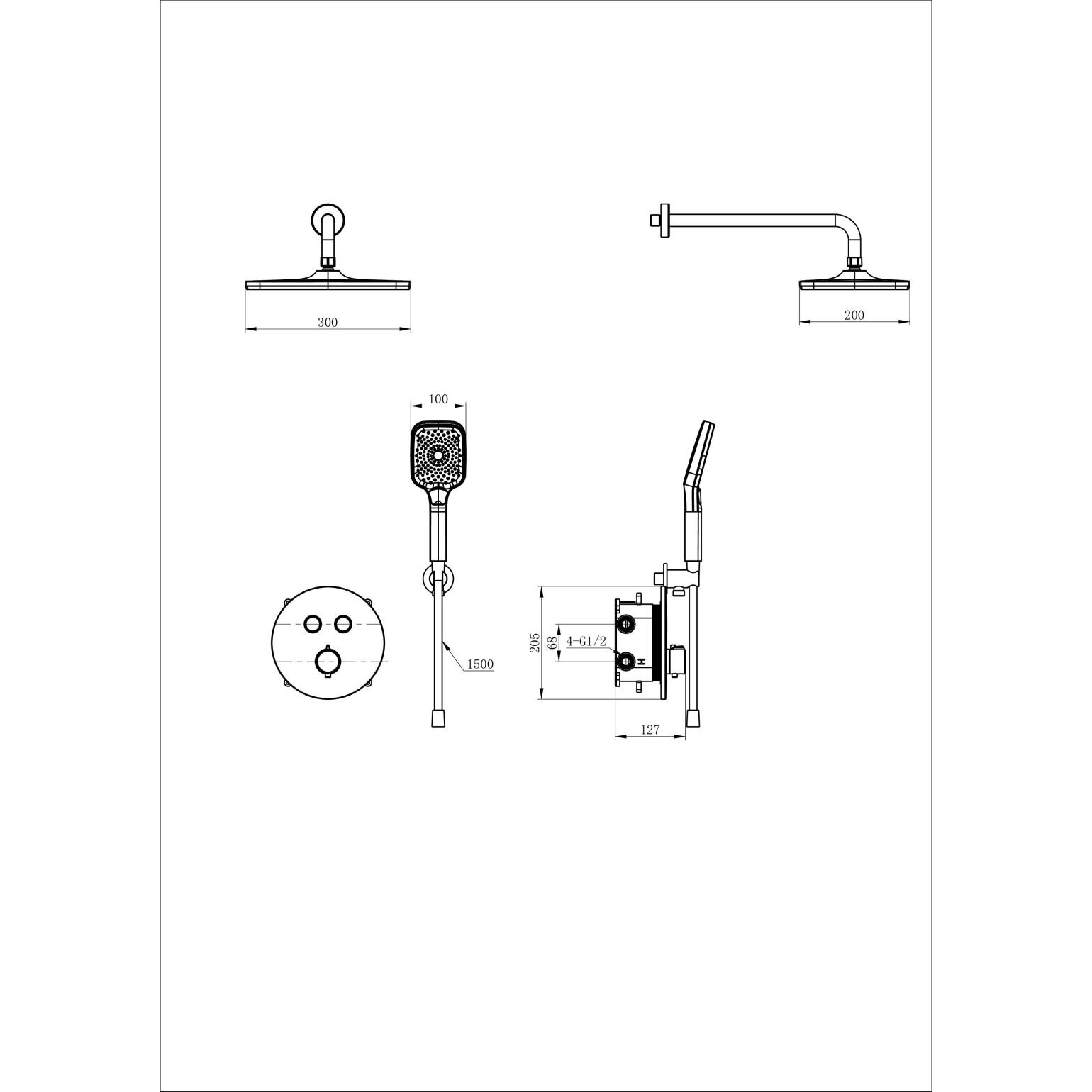 Душевая система с термостатом встраиваемая WONZON & WOGHAND, Хром (WW-D2017-A-CR)