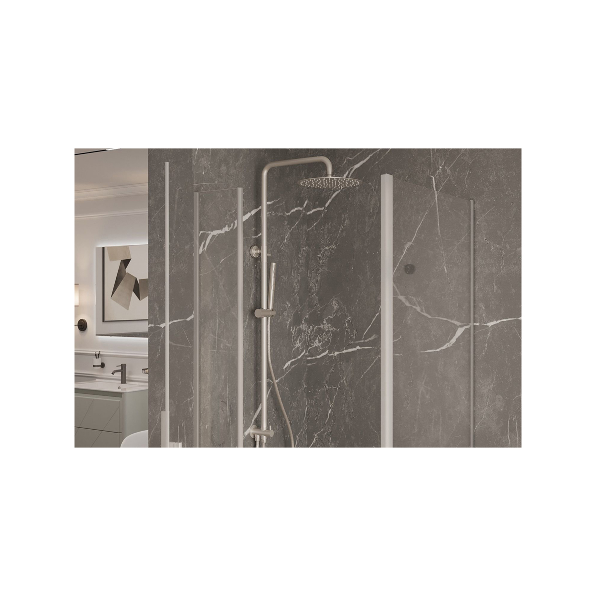 - Современный дизайн: Брашированный никель придаёт стойке утончённый вид, который легко впишется в любой интерьер, от классического до современного.