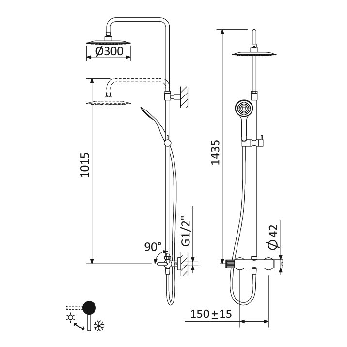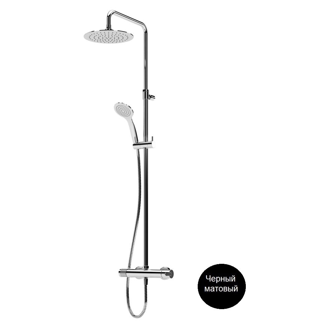 Душевая стойка телескопическая, с верхним и ручным душем, верхний душ диаметр 300 мм металл, исполнение черный матовый
