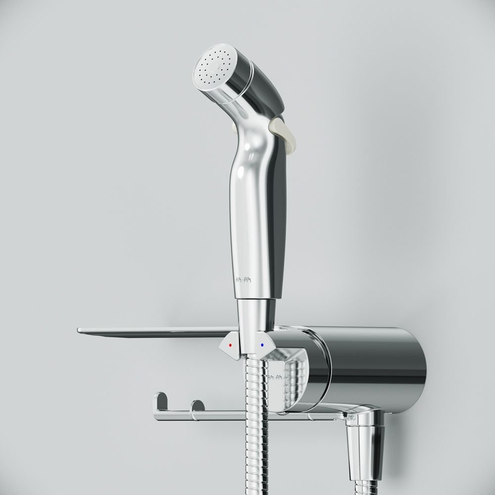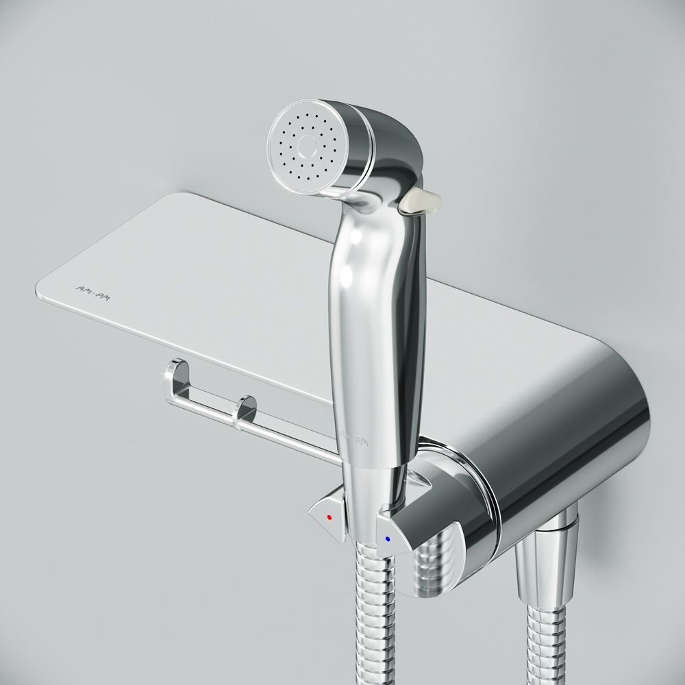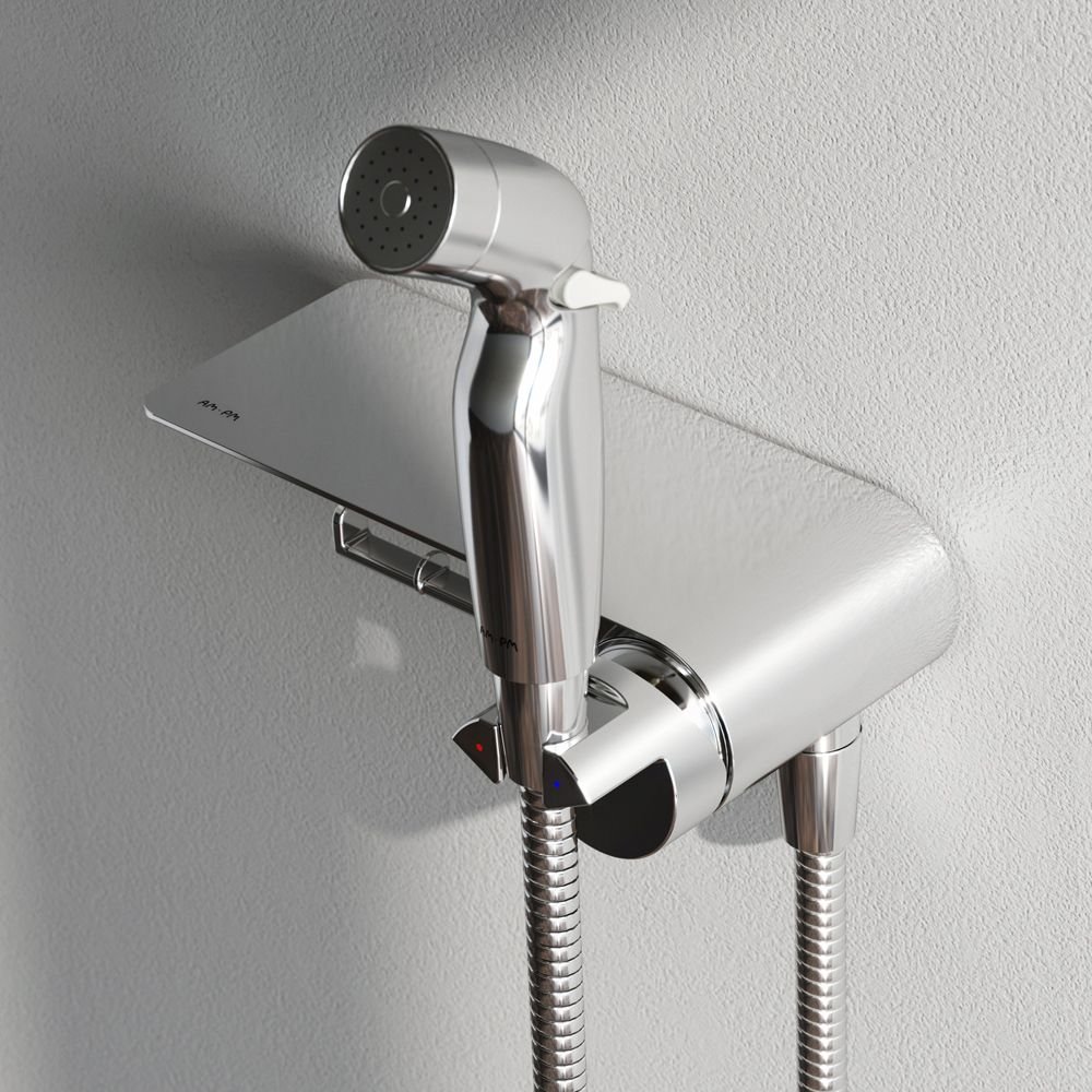 Гигиенический набор со смесителем для душа Am.Pm (Ам.Пм) Func хром, с полкой, F0H8F900