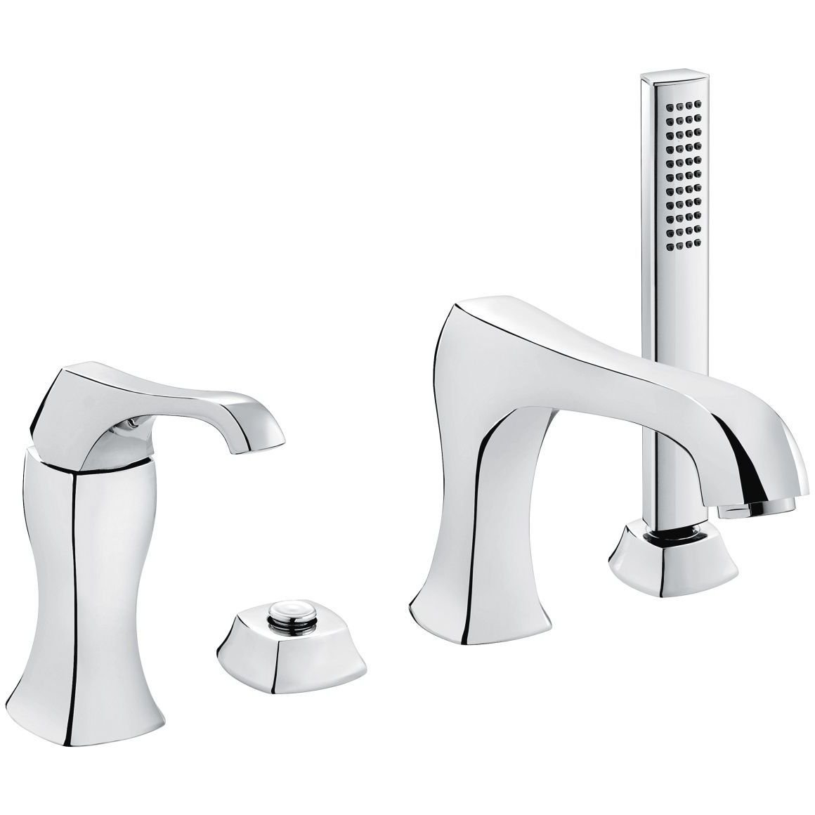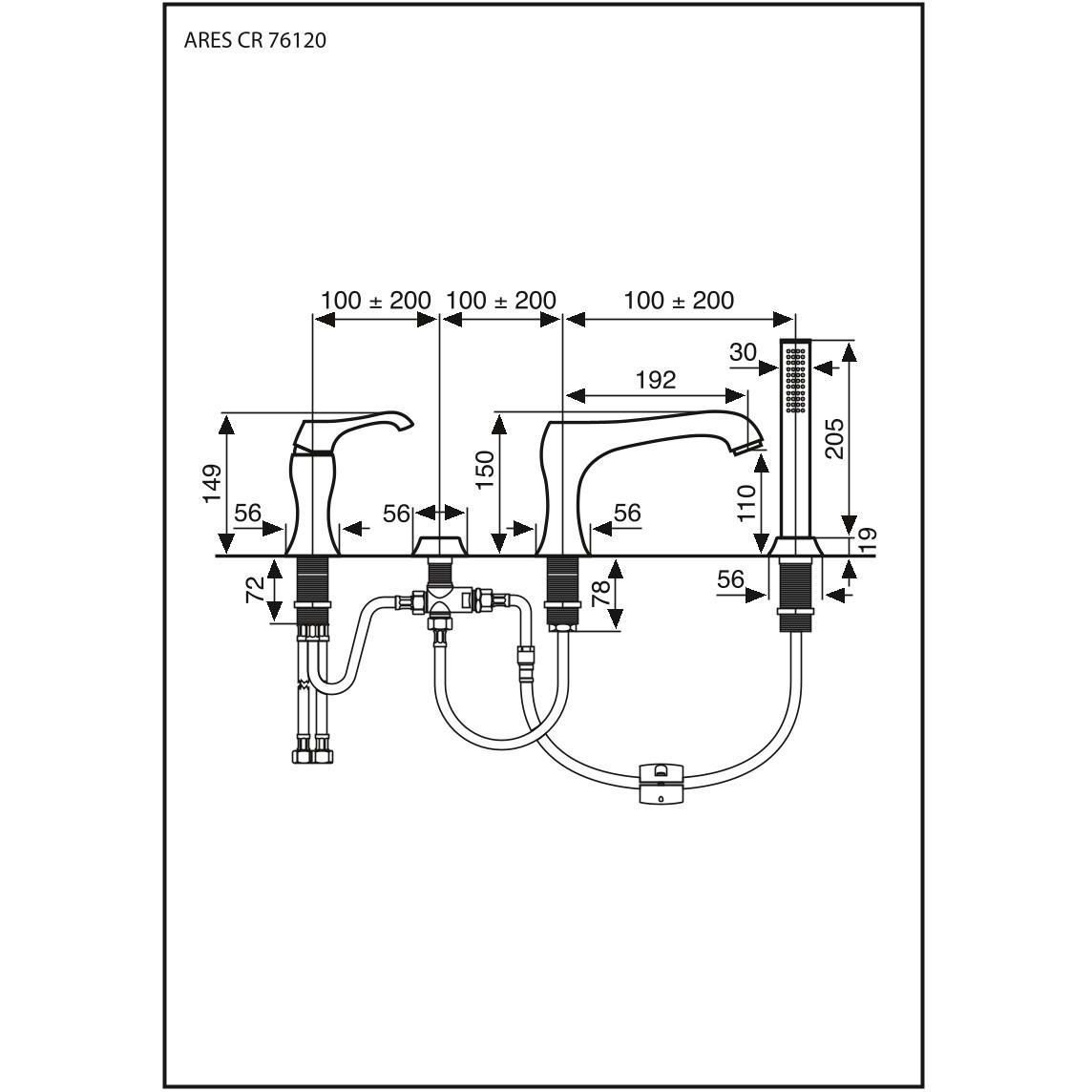 Комплект смесителя на борт ванны Emmevi (Эммеви) Ares, 4 отверстия (излив 19,2 см), с набором для душа, хром, 76120/CR