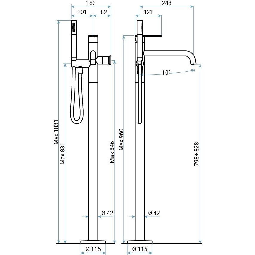 Напольный смеситель Emmevi (Эммеви) Filobrass, однорычажный, с набором для душа, излив 18,2 см, хром, 85030/CR