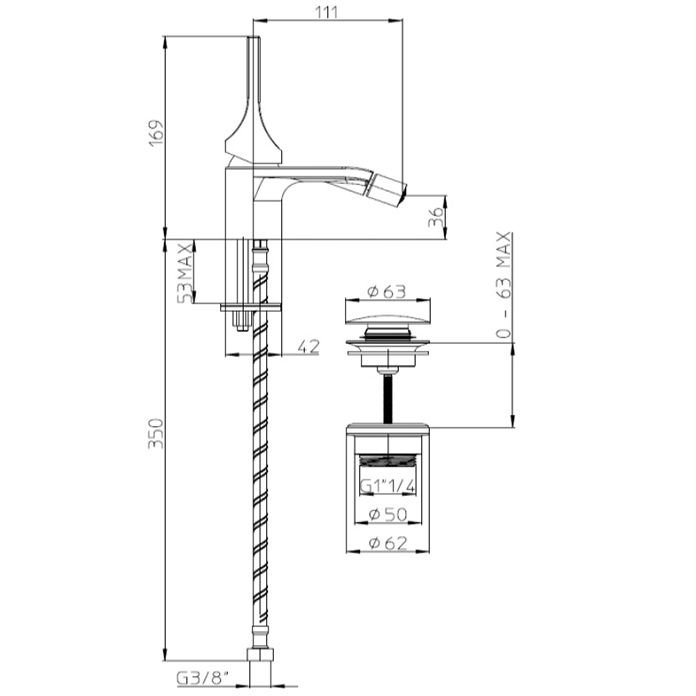 BOSSINI APICE Смеситель для биде на 1 отверстие, однорычажный, с донным клапаном, цвет черный матовый