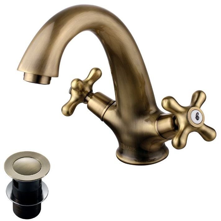 HUBER Victorian Смеситель двухвентильный для раковины на 1 отверстие с донным клапаном, цвет бронза