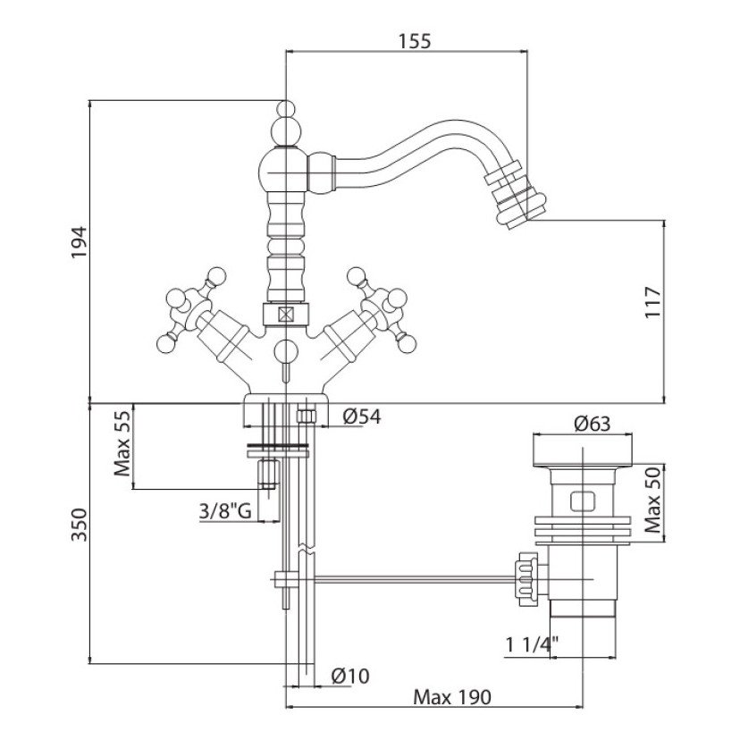 Смеситель на биде с донным клапаном бронза, ручки бронза