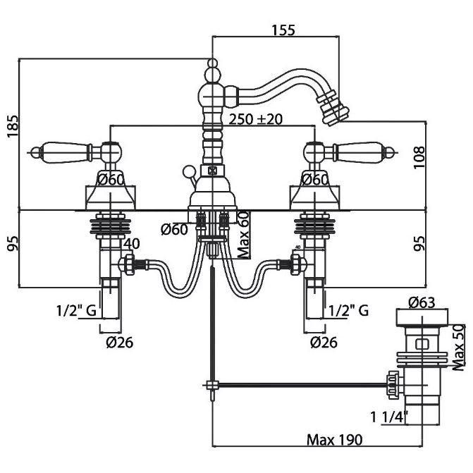 Высота излива (мм):108 p>
