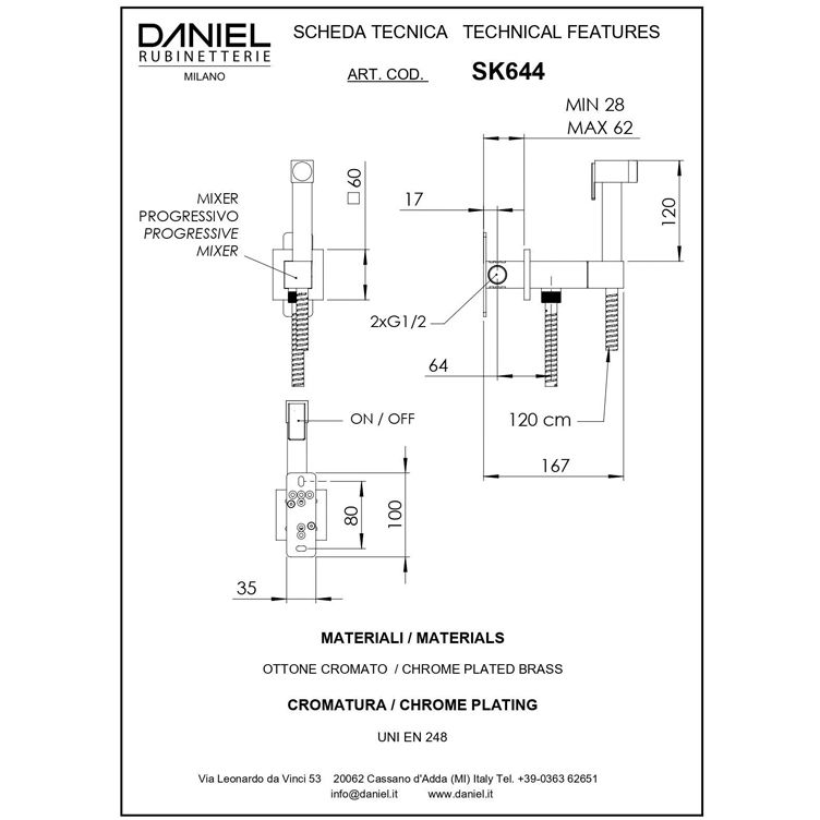Смеситель для биде Daniel SkyLine, с прогрессивным картриджем, цвет бронза SK644-63