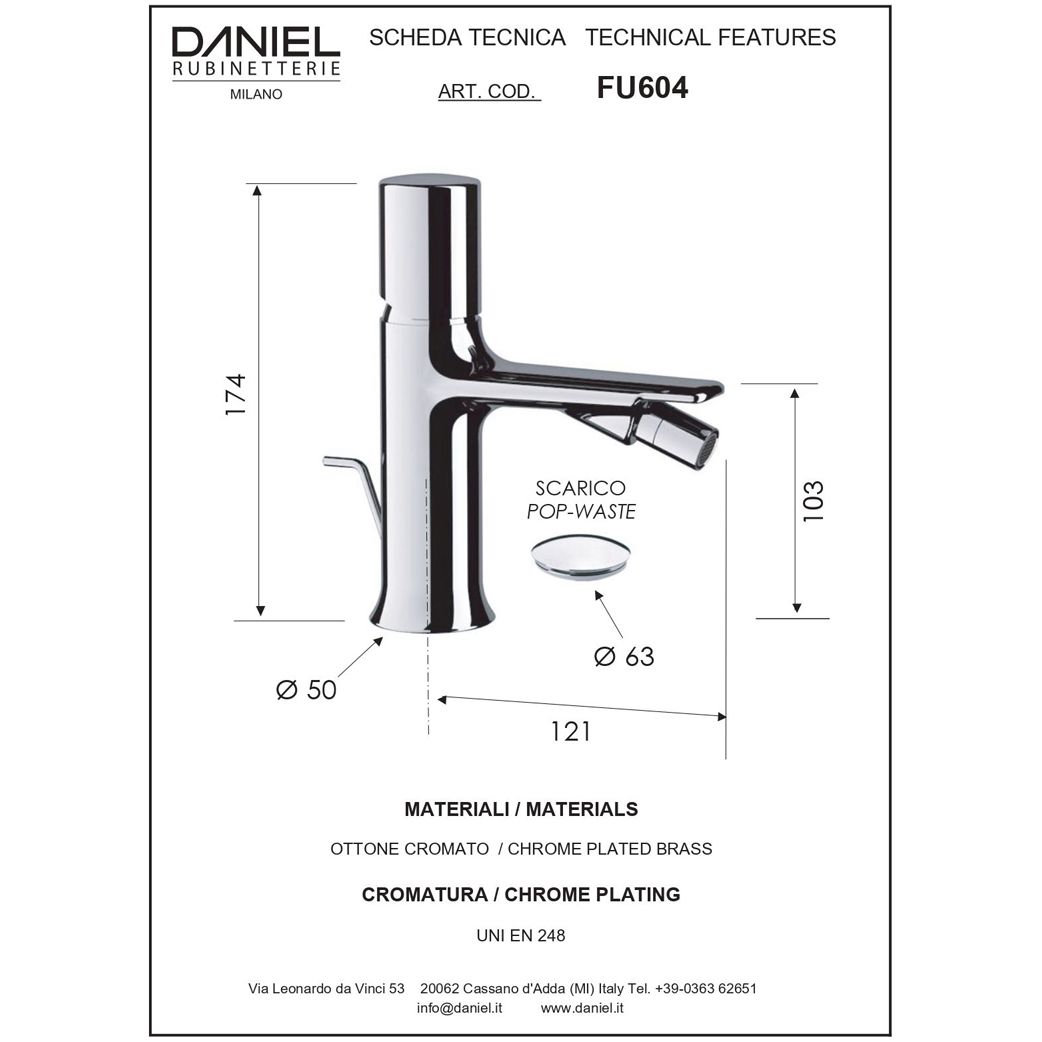 Смеситель для биде Daniel (Дэниел) Fusion, однорычажный с донным клапаном, цвет цвет графит FU604-GO