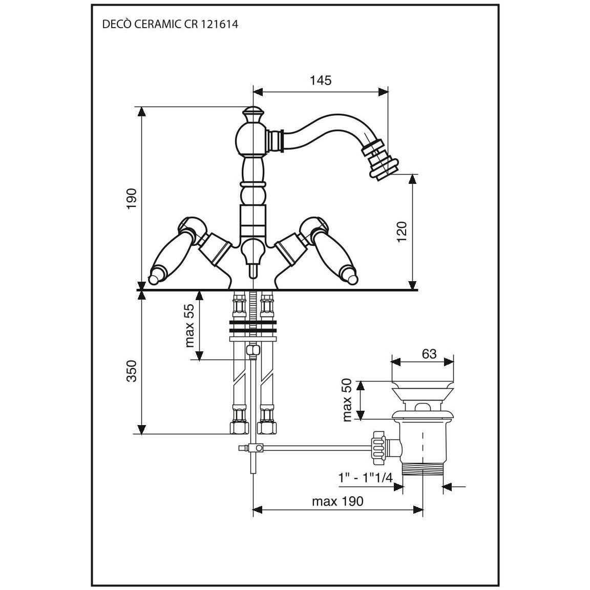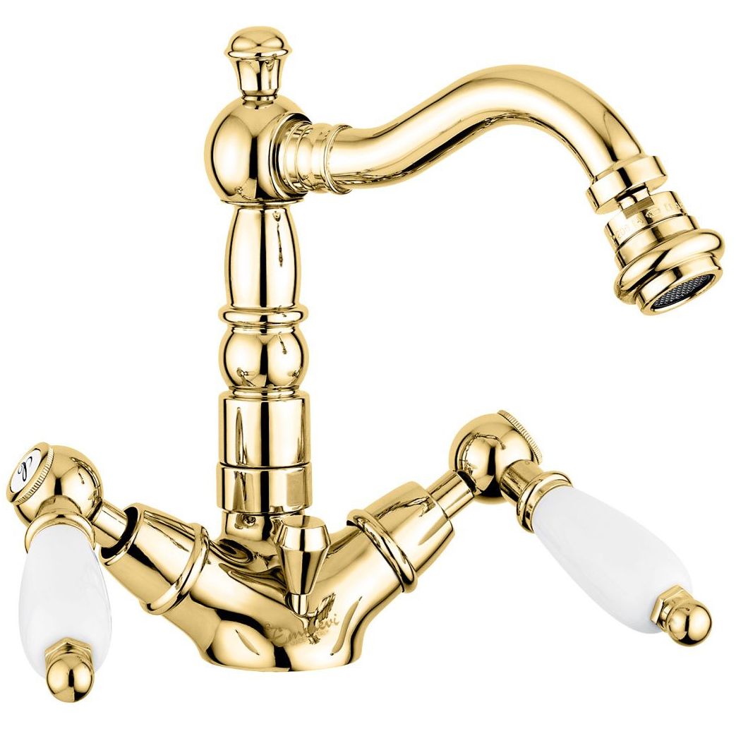 Смеситель для биде Emmevi (Эммеви) Deco Ceramic, двухрычажный с донным клапаном, цвет золото 121614/OR