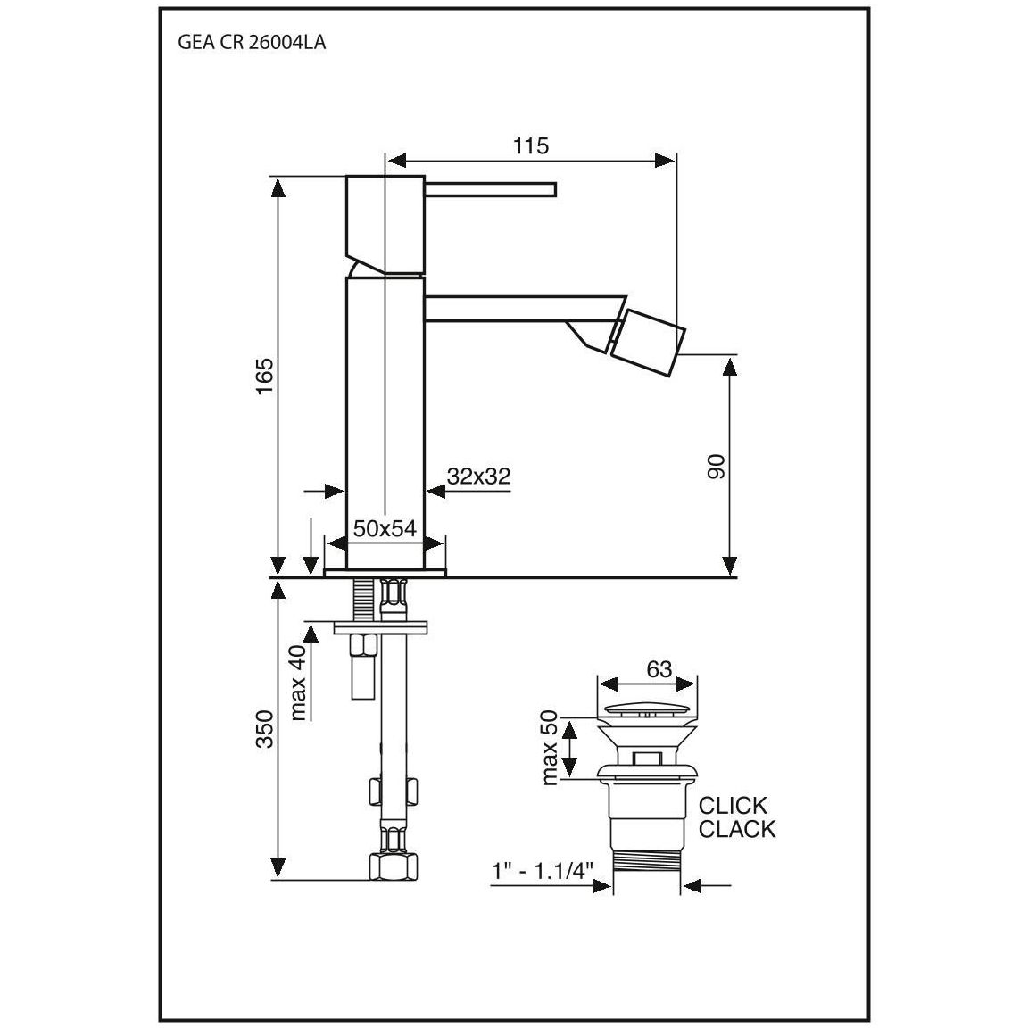 Смеситель для биде Emmevi (Эммеви) Gea, однорычажный, ручка со стержнем, с донным клапаном click-clack, цвет хром 26004LA/CR