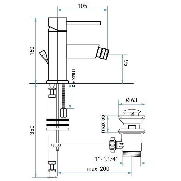 Высота излива (мм):95 p>
