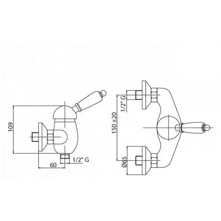 Смеситель для душа Cezares (Цезарис) однорычажный в комплекте с ручным душем, золото, ручки Swarovski VINTAGE-D-03/24-Sw