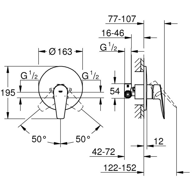 Смеситель для душа Grohe (Гроэ) BauEdge скрытого монтажа, в комплекте с монтажной частью, хром (29078001)