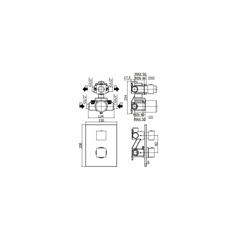 Paffoni Level LEQ518CR/M Термостат для ванны (хром). Встраиваемый. Смеситель с внутренним механизмом, переключатель на два выхода. Панель из нержавеющей стали.