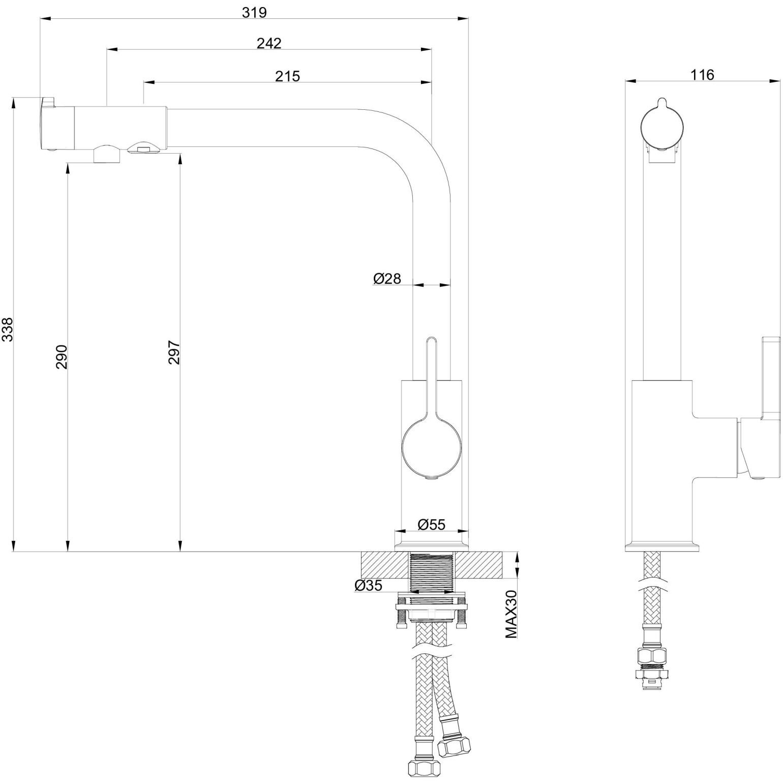 Смеситель для кухни c подключением фильтра WONZON & WOGHAND, Брашированное золото (WW-88458008-BG)