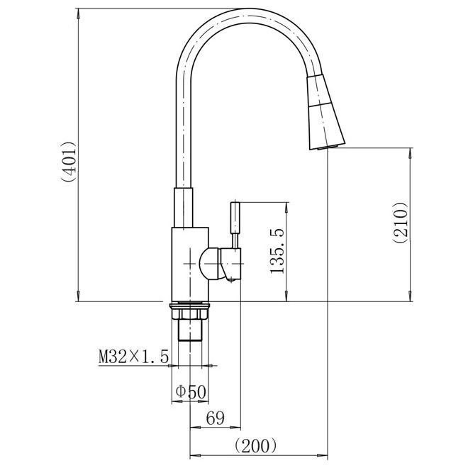 Смеситель для кухни Fashun (Фашун) с гибким изливом (A4053+B14) хром,черный