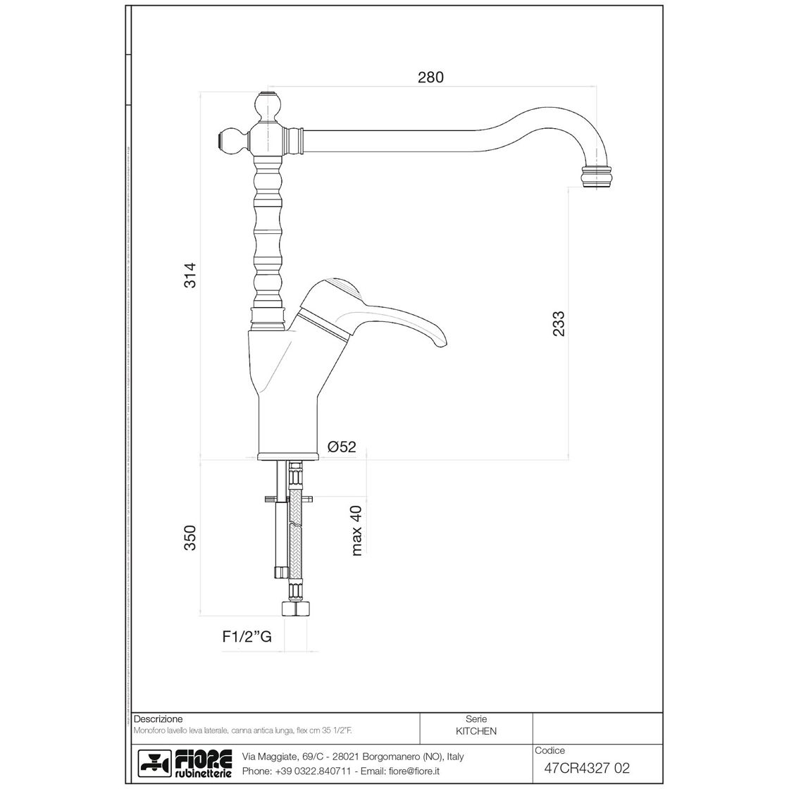 Смеситель для кухни Fiore (Фиоре) Jafar, однорычажный (излив 28 см), без донного клапана, цвет золото 47OO4327