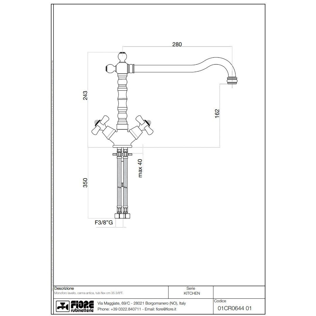 Смеситель для кухни Fiore (Фиоре) Margot Sky, двухвентильный, цвет хром - Swarovski 01CR0644