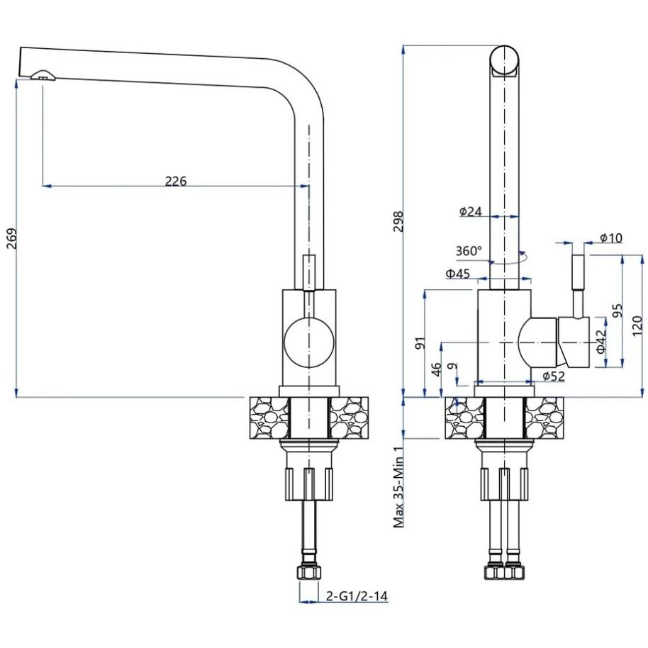 Смеситель для кухни GranFest (Гранфест) QUARZ Г-обр. D-35мм, Z-5411 нержавейка