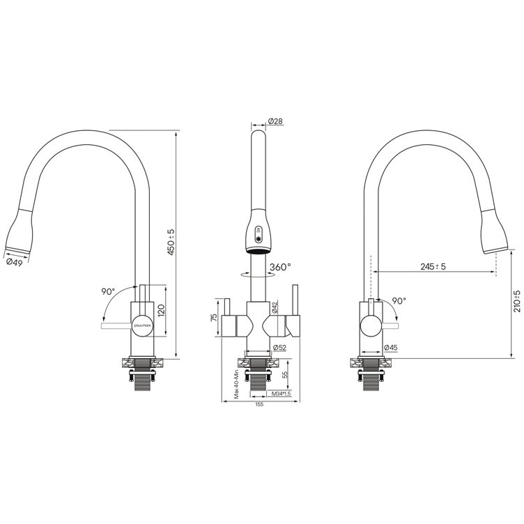 Смеситель для кухни Paulmark (Паульмарк) под фильтр с выдвижным шлангом Lange золото La214212-G