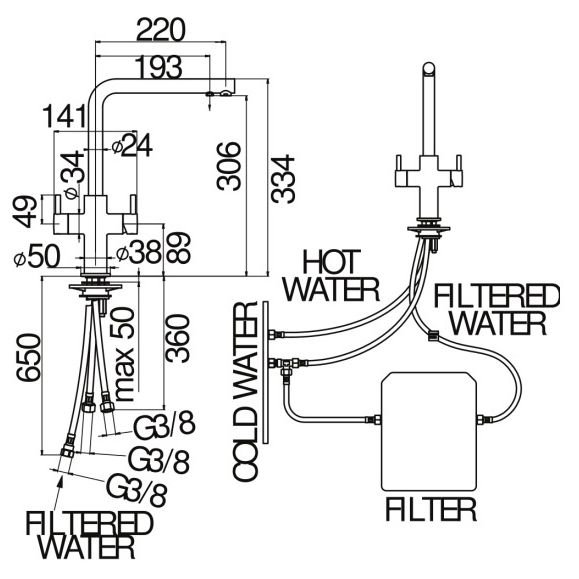 Смеситель для кухни под фильтр Nobili (Нобили) Acquerelli AQ93823/3VCR Chrome