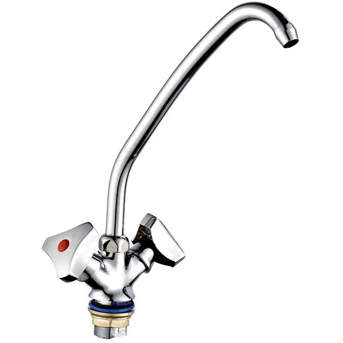 Смеситель кухонный ПСМ ПрофСан 120-80 устанавливается на борт раковины при помощи крепежной гайки, которая идет в комплекте. От других аналогичных моделей отличается металлическими маховиками Лючия.