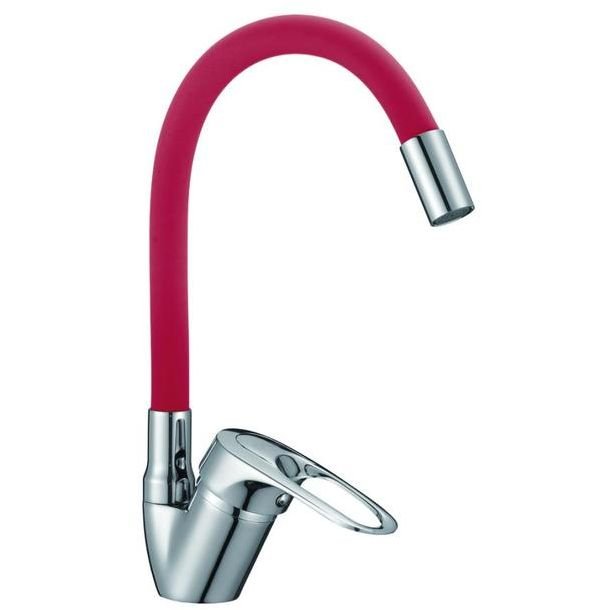 Смеситель для кухни с гибким изливом D-Lin (Д-Лин) D150628-4C, хром/красный