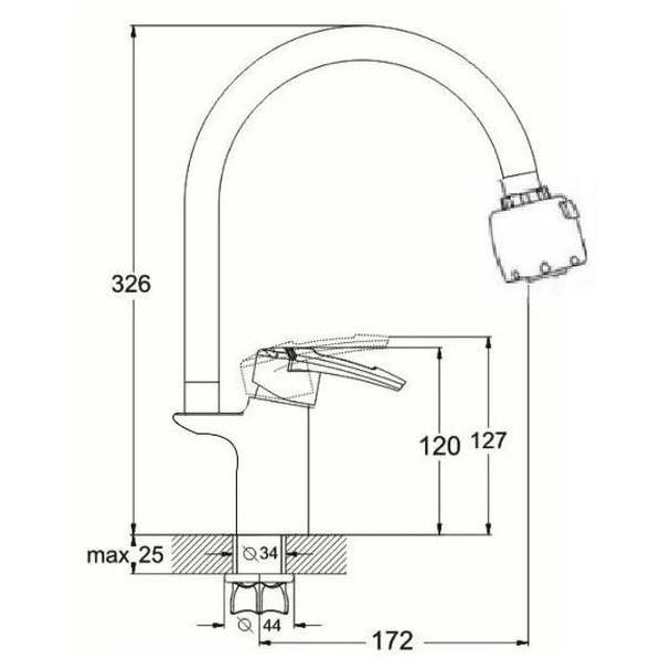 Смеситель для кухни с гибким изливом D-Lin (Д-Лин) D157315-T, хром