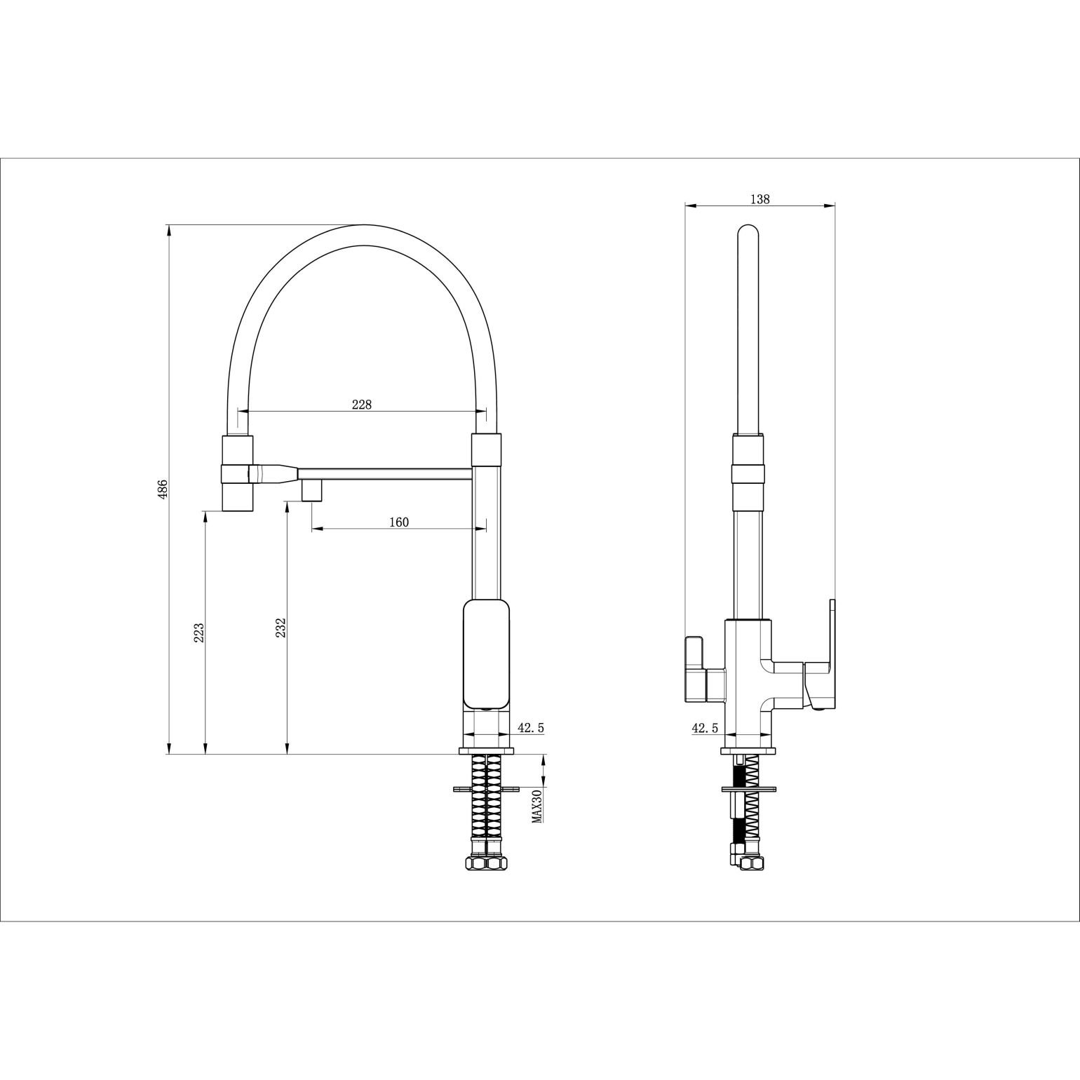 Смеситель для кухни с гибким изливом и подключением фильтра WONZON & WOGHAND, Хром (WW-88458012-CR)