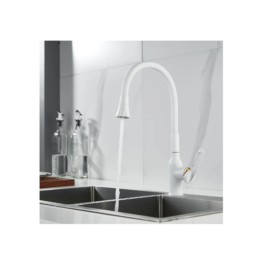 Смеситель для кухни с гибким изливом Raffine (Раффин) F303C-1, белый