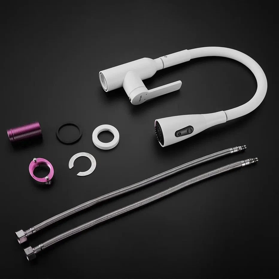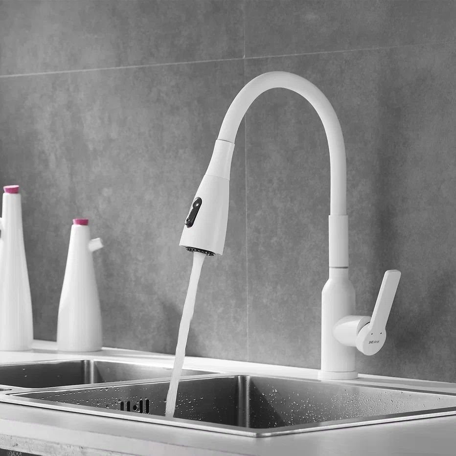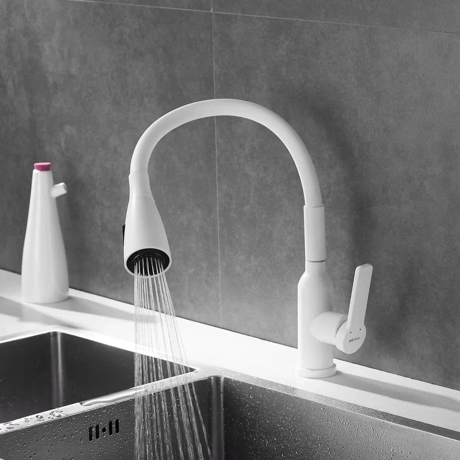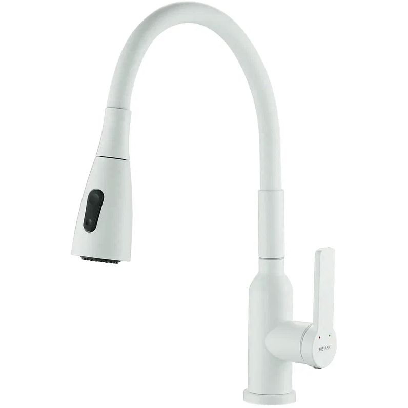 Смеситель для кухни с гибким изливом Shevanik (Шеваник) S843C-1, белый