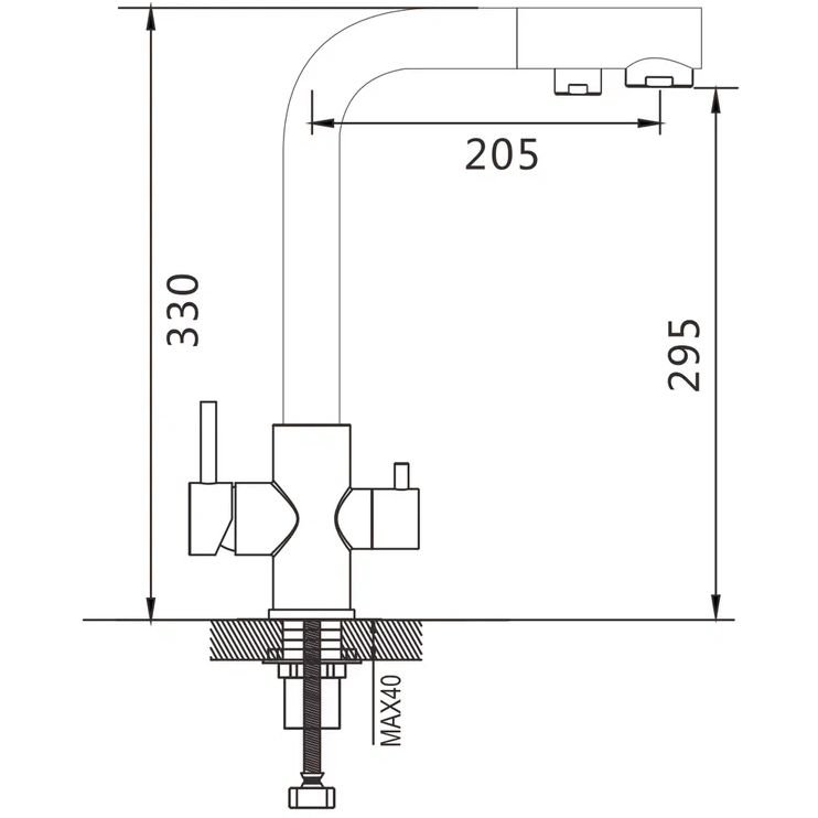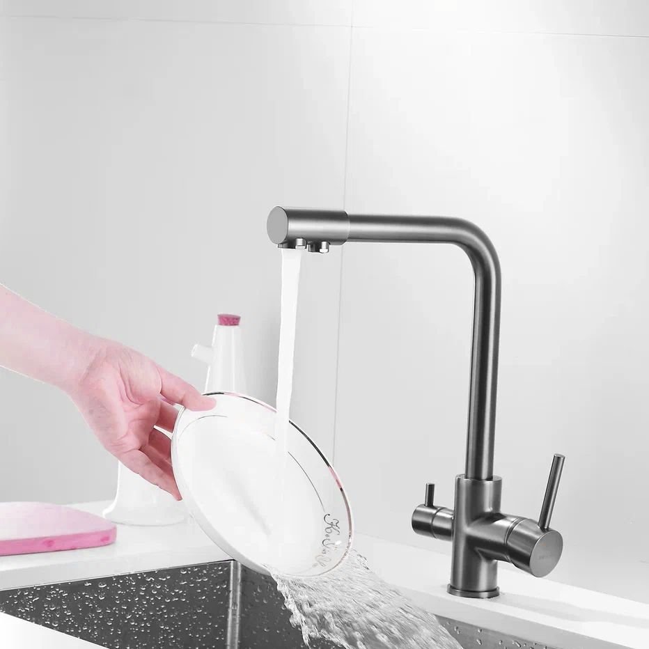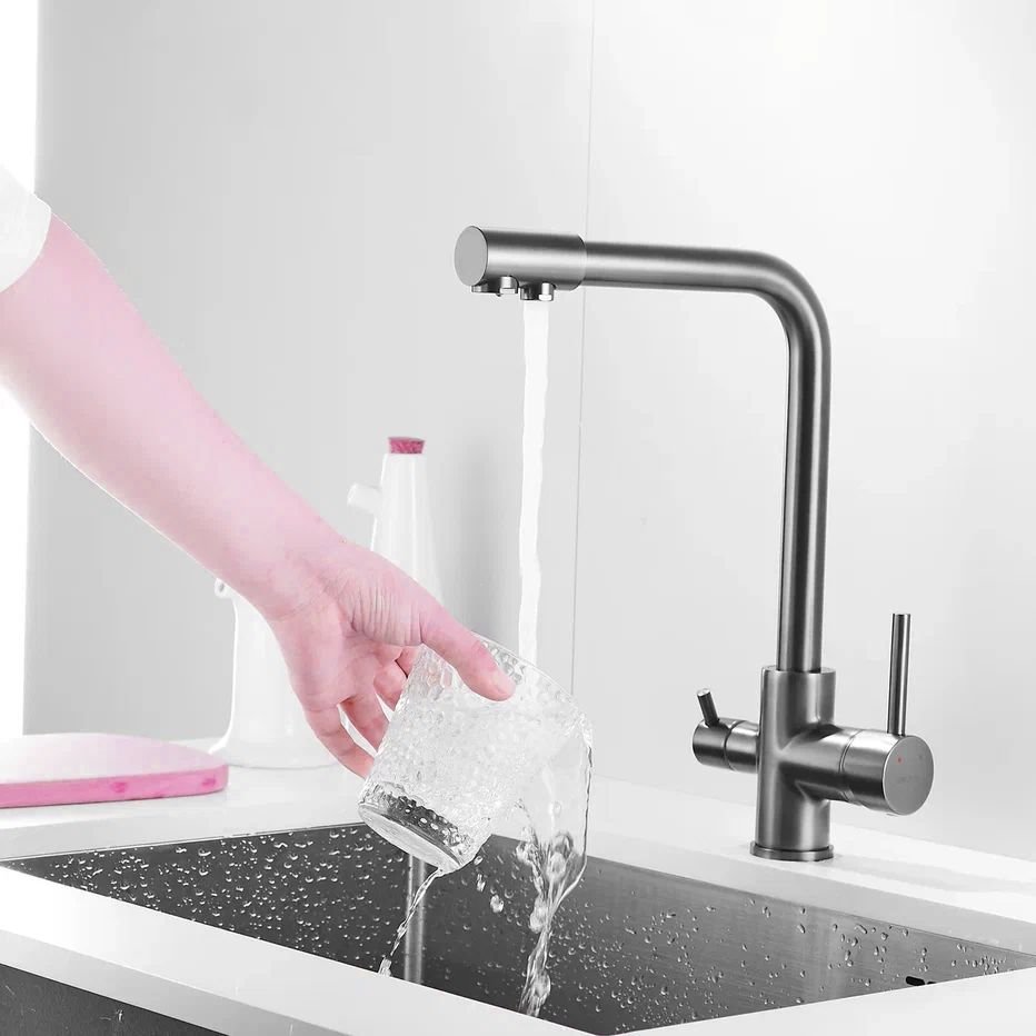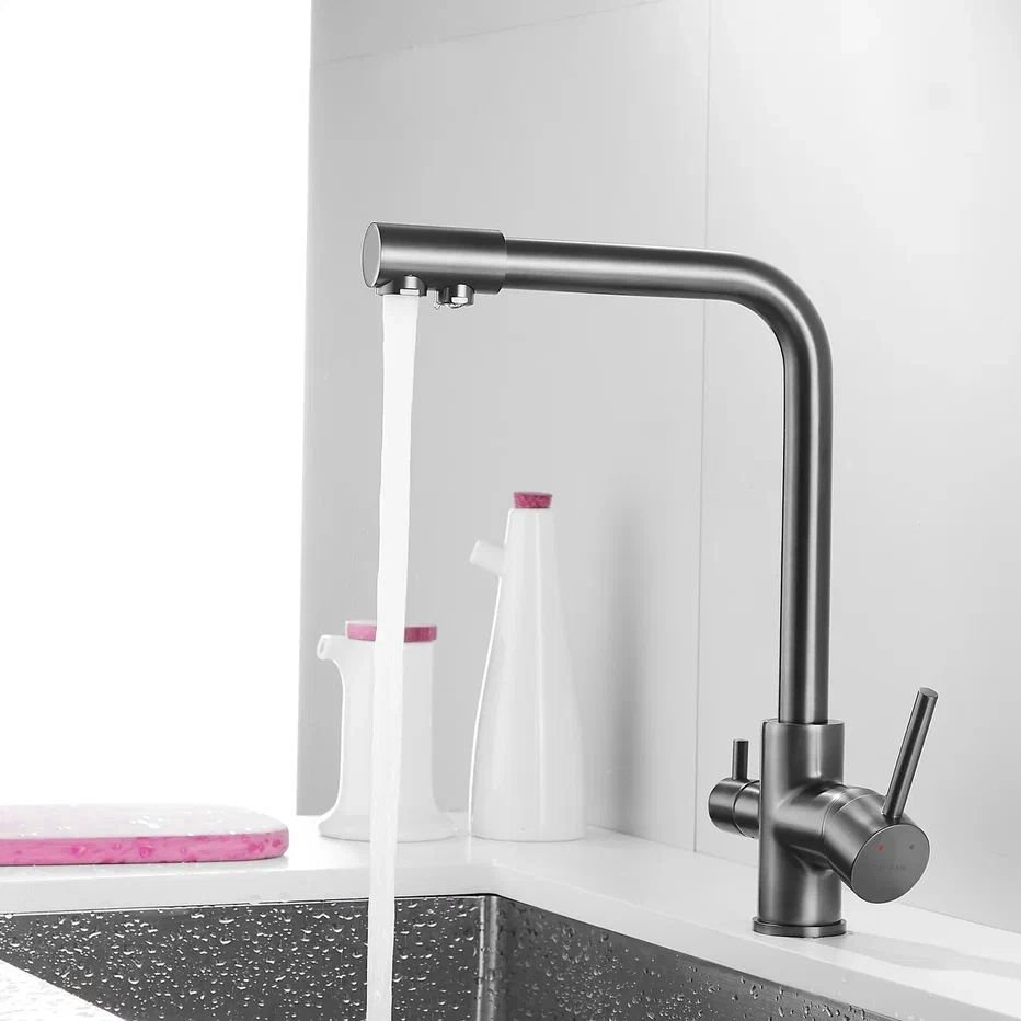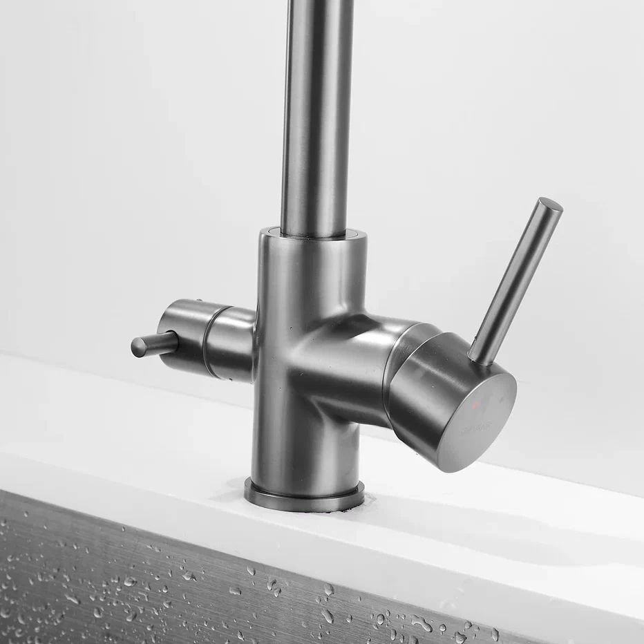 Смеситель для кухни с подключением фильтра Shevanik S328T, оружейная сталь