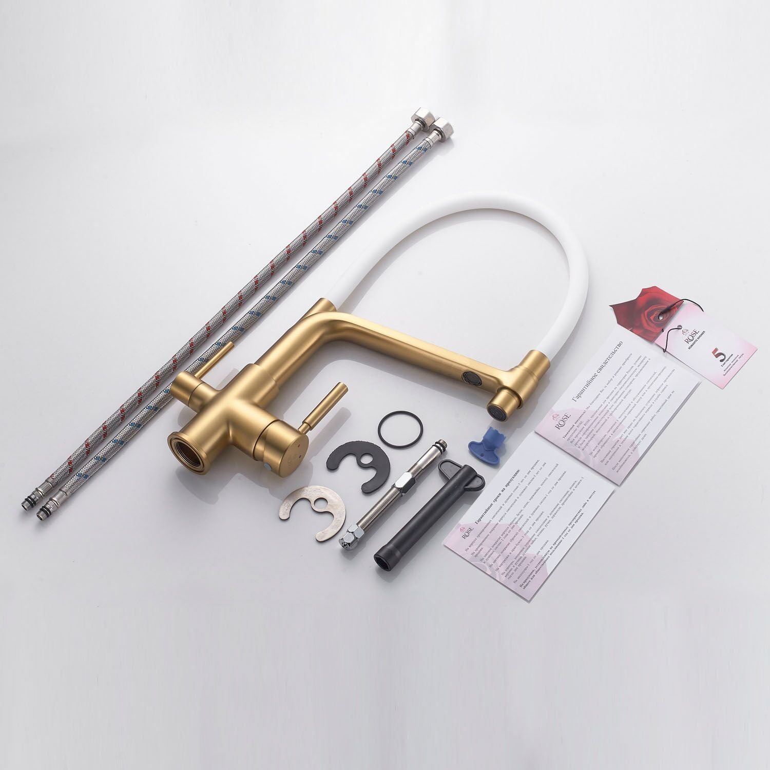 Смеситель для кухни с подключением фильтра воды Rose (Розе) , золотой сатин, R658G