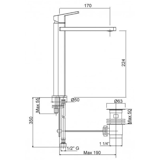 Высота излива (мм):224 p>