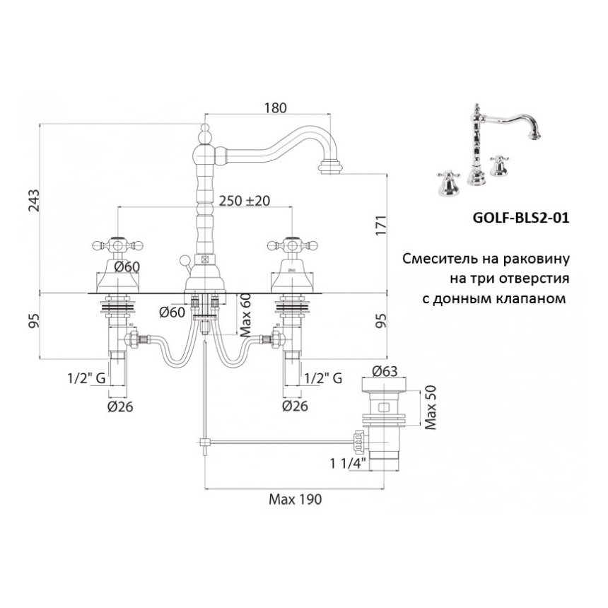 Оснащение: донный клапан, аэратор