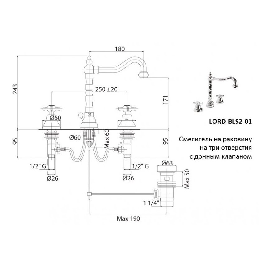 Смеситель для раковины Cezares (Цезарис) Lord хром, ручки хром (LORD-BLS2-01)
