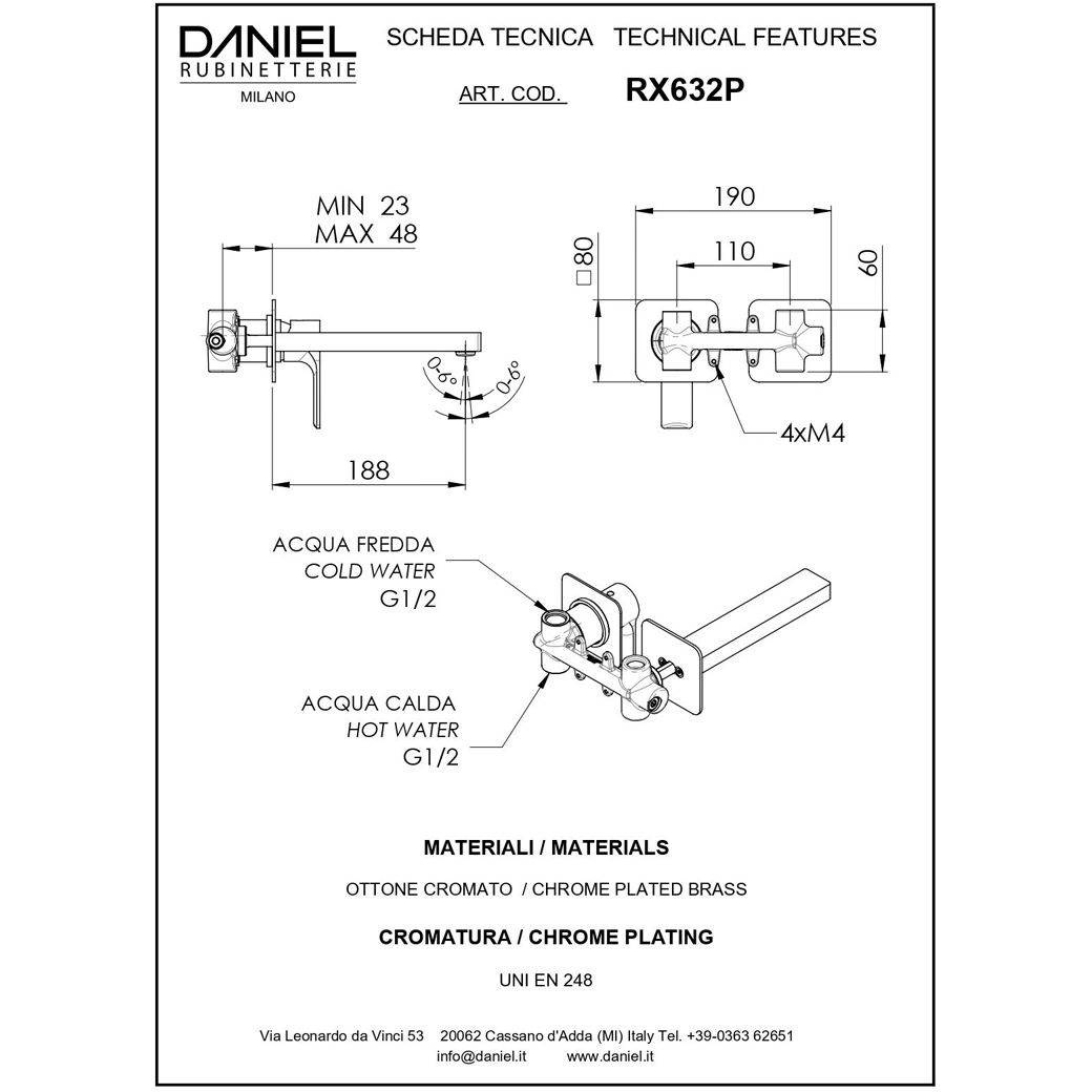 Смеситель для раковины Daniel (Дэниел) Reflex, встраиваемый в стену однорычажный (излив 18,8 см), цвет черный матовый RX632P-15