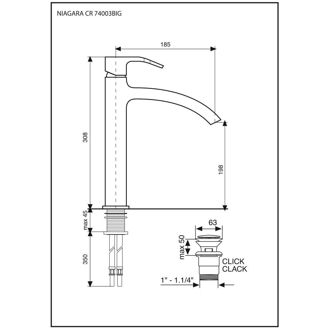 Смеситель для раковины Emmevi (Эммеви) Niagara, высокий однорычажный с донным клапаном click-clack, цвет хром 74003BIG/CR