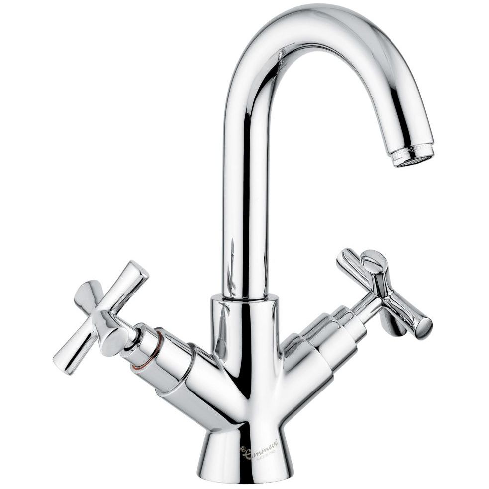 Смеситель для раковины Emmevi (Эммеви) Spirit New, двухвентильный (h28 см, поворотный излив 14 см), с донным клапаном, цвет брашированное золото 31053/ORS