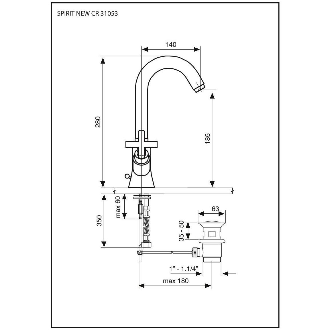 Высота излива (мм):185 p>