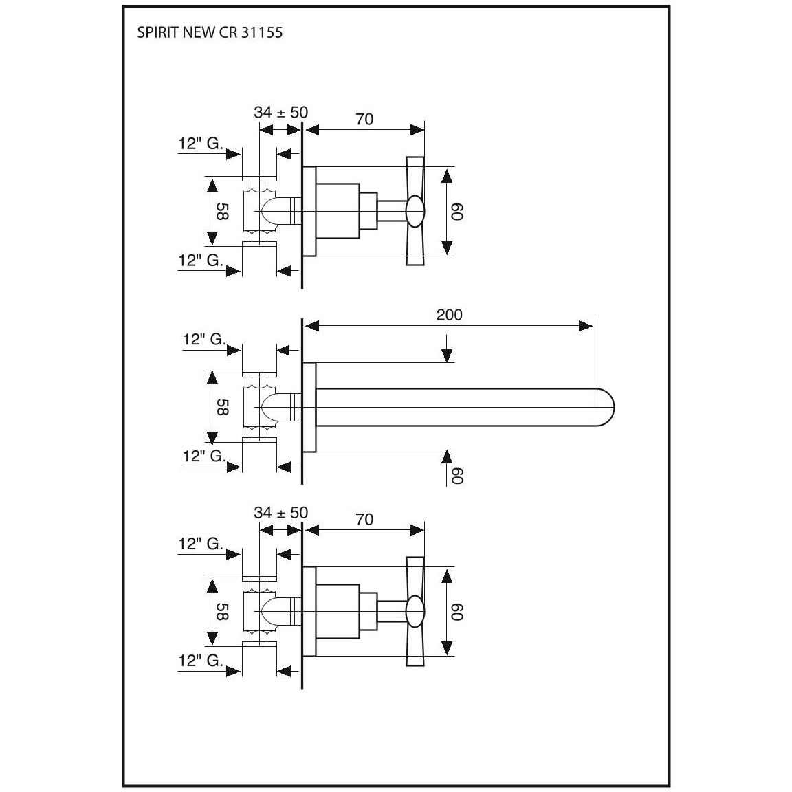 Смеситель для раковины Emmevi (Эммеви) Spirit New, встраиваемый в стену двухвентильный на 3 отверстия, без донного клапана, цвет золото 31155/OR