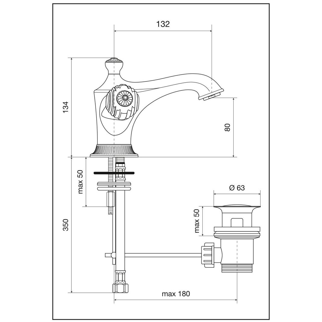 Смеситель для раковины Emmevi (Эммеви) The One Cloe, с донным клапаном, металлические ручки, цвет золото 98003/OR