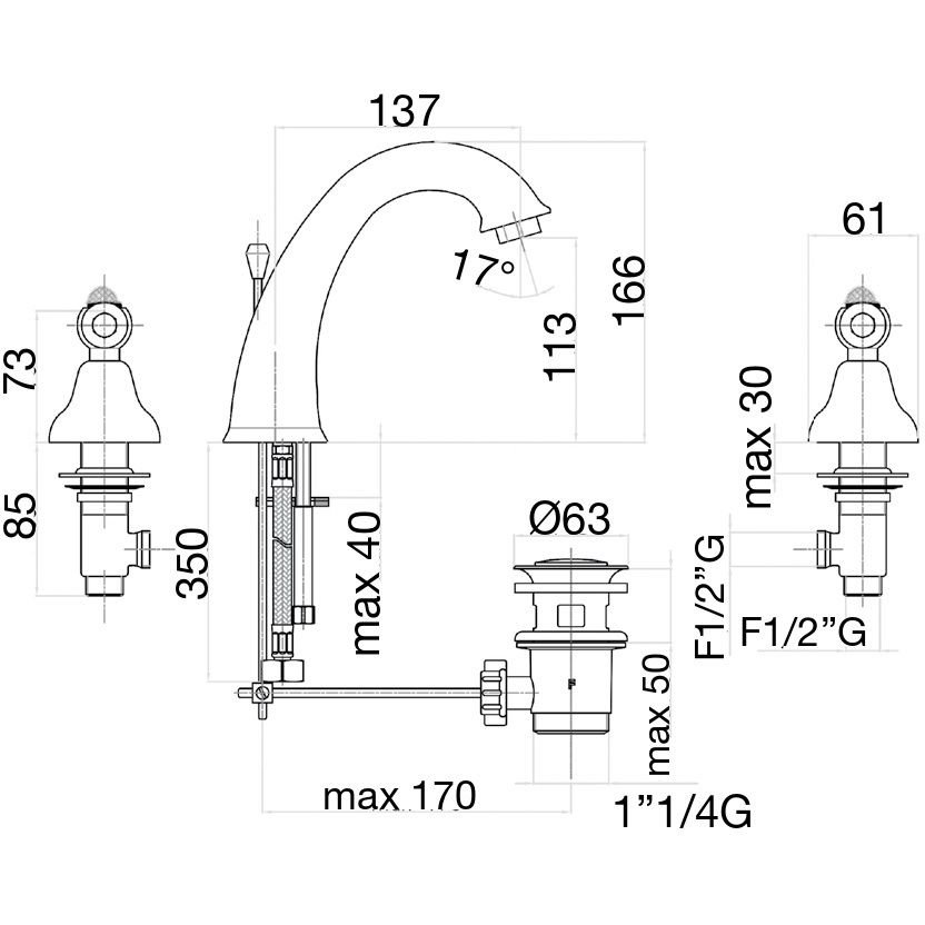 смеситель, донный клапан, подводка