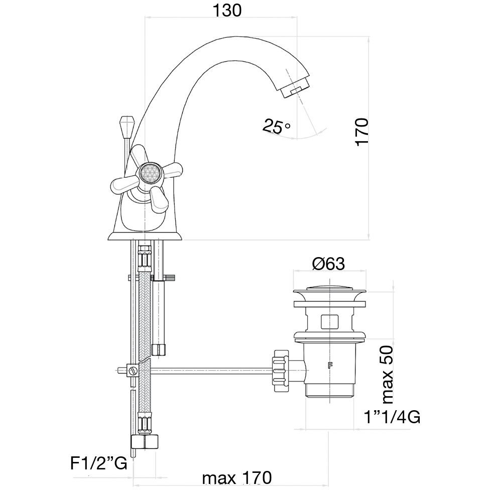 смеситель, донный клапан, подводка