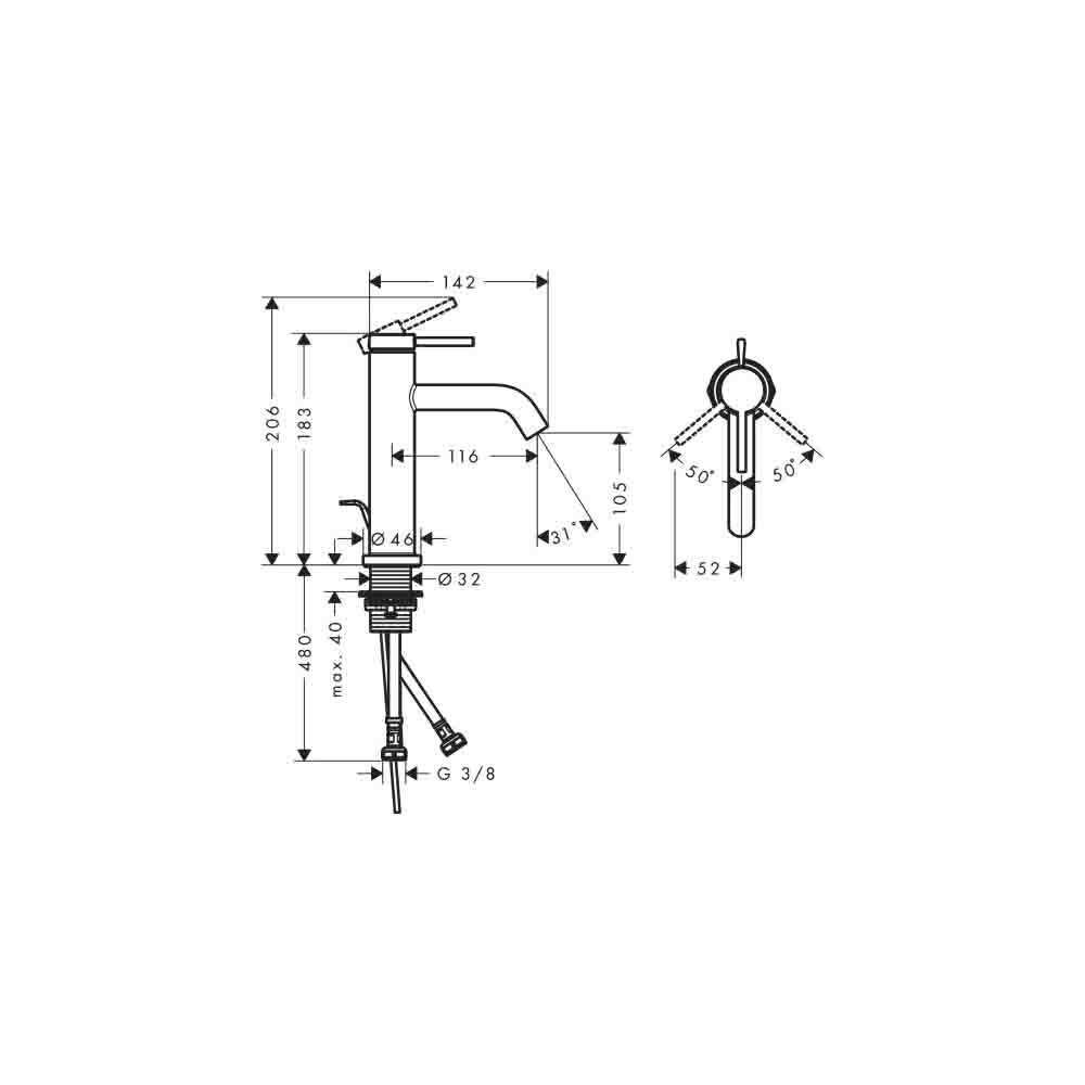 Смеситель для раковины Hansgrohe (Хансгрое) Tecturis S 110 однорычажный со сливным гарнитуром 73310000 хром