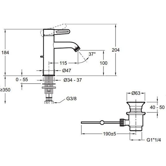 Длина излива (мм):115 p>