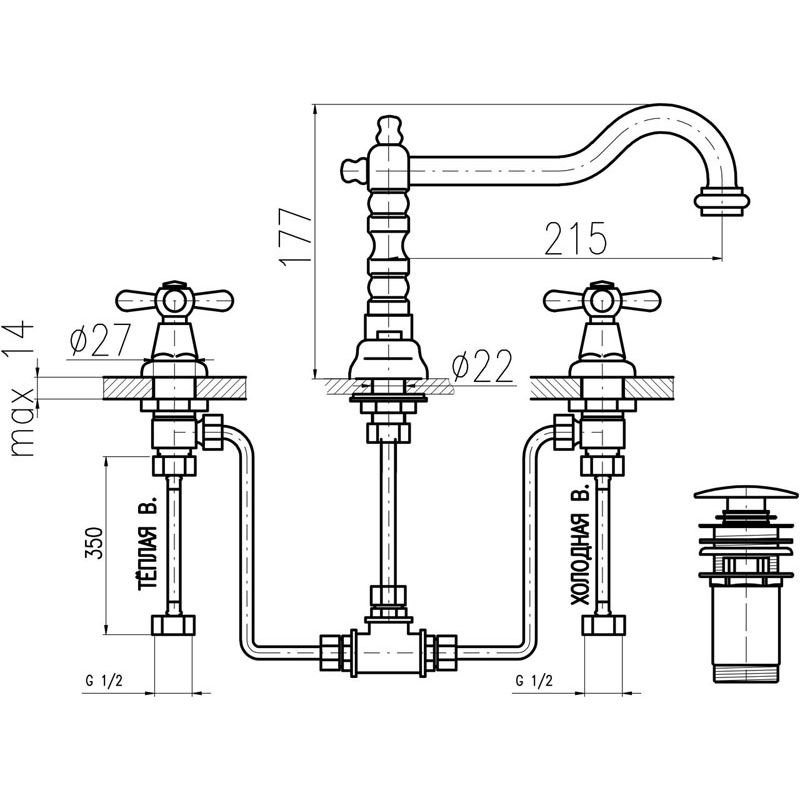 Стандарт подводки:1/2 дюйма p>
